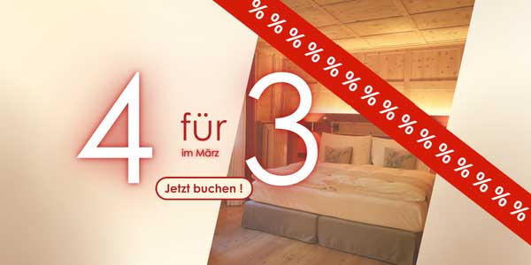 Profitieren Sie vom 1. -31. März 2026 (Aufenthalte in dieser Periode) von unserem Spezialangebot. Sie erhalten 4 Übernachtungen und bezahlen nur 3 davon.